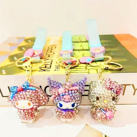 Nuevo llavero de silicona exquisito Simple Kulomi de dibujos animados hecho a mano correa de teléfono con incrustaciones de diamantes llavero de coche bolsa colgante